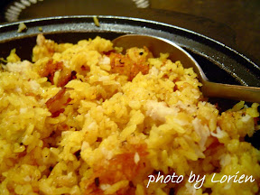 鮮嫩的鸚鵡魚與薑黃飯的組合 鍋底的薑黃飯成了乾脆的鍋巴