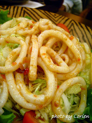 花枝圈很新鮮 搭配高麗菜絲跟它的番茄醬料